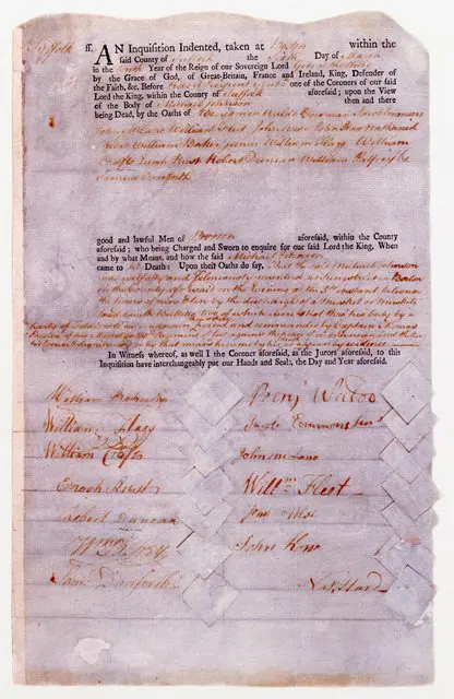 Crispus Attucks has been most closely identified with Michael Brown, the 18-year-old African American who was shot and killed by a police officer in Ferguson, Missouri in 2014. Political journalist Amy Goodman of Democracy Now is most blunt in this comparison, recognizing that in the coroner’s report on Attucks – the Bostonian Society holds the original – Attucks was referred to as Michael Johnson, sharing the same first name with Brown.